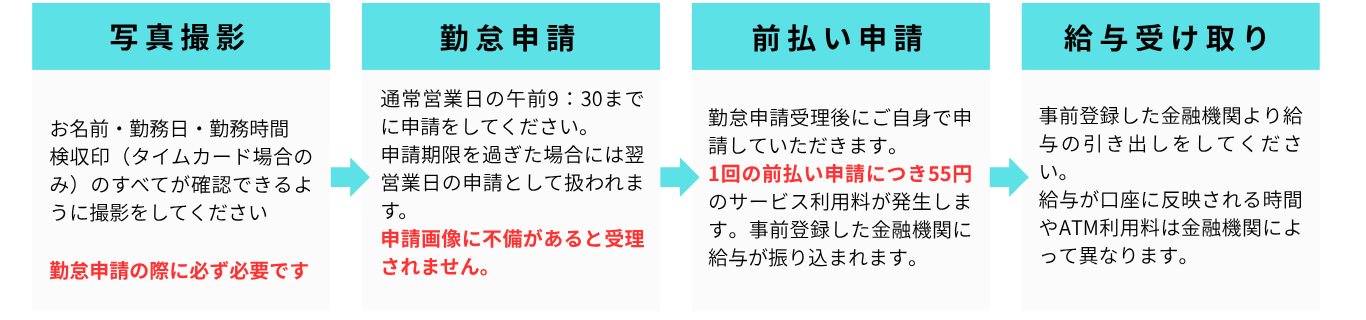 前払い制度をご利用の場合でも、月払いのお給料日にお支払いいたします。